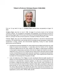 Document download: Tribute to Prof. Wolfgang Wagner (1940-2024)